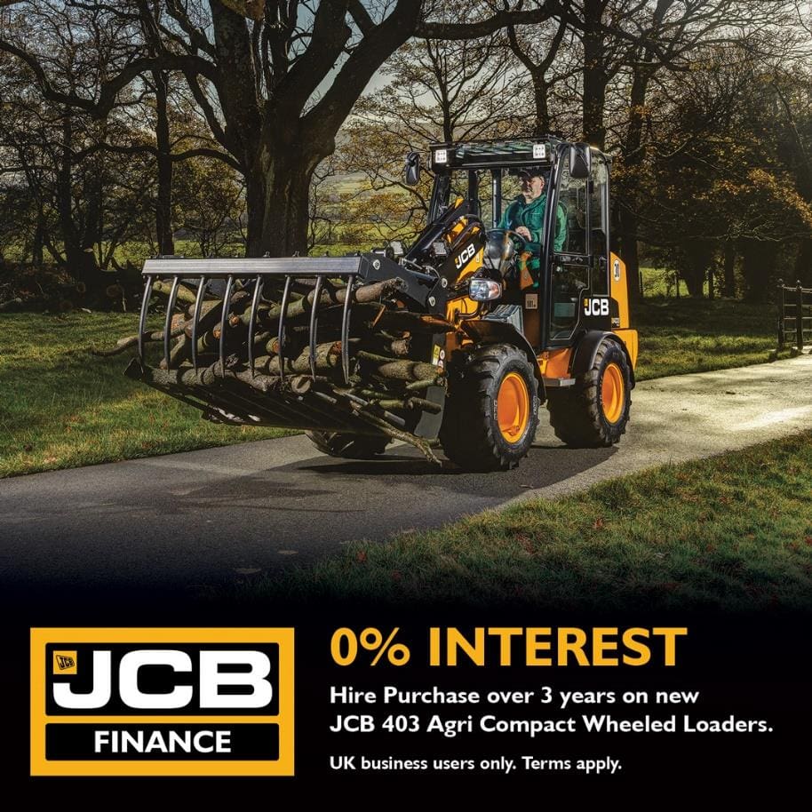 Take advantage of this 0% Interest Hire Purchase offer on new JCB agricultural 403 Agri Compact Wheeled Loading Shovels. Available on a 3+33 month payment profile on machines ordered between 15.01.2024 & 31.03.2024 and delivered by 30.06.2024 via Hamilton Bros. (Engineering) Limited.