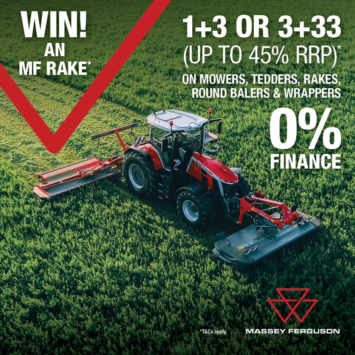 We have fantastic savings available on our grass equipment, PLUS when you ask us for a quote on any grass equipment you will automatically be entered into a prize draw to win a Massey Ferguson Rake!
