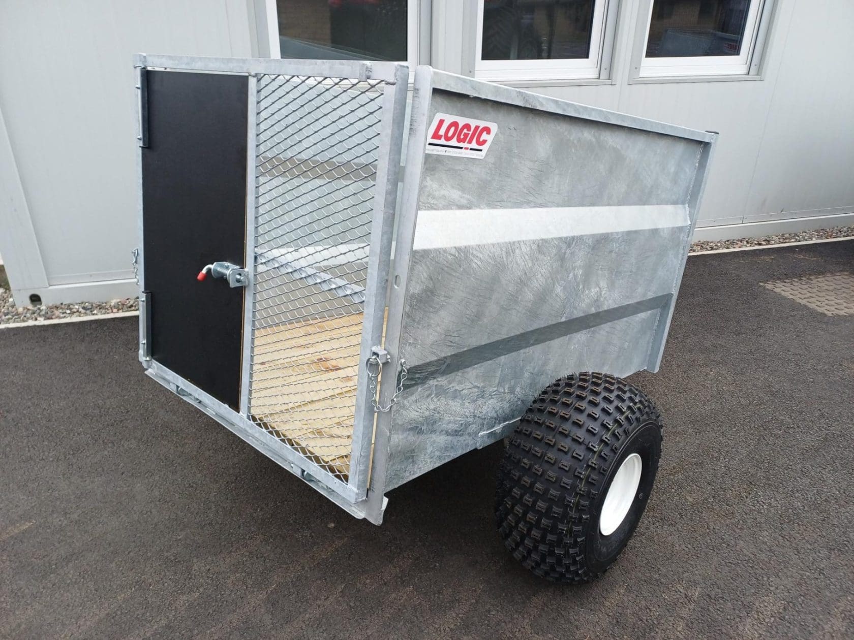 New Logic SST448E Livestock trailer c/w timber floor, 22x11x8 floatation wheels, half mesh 1/2 side hinged door, ramp tailgate